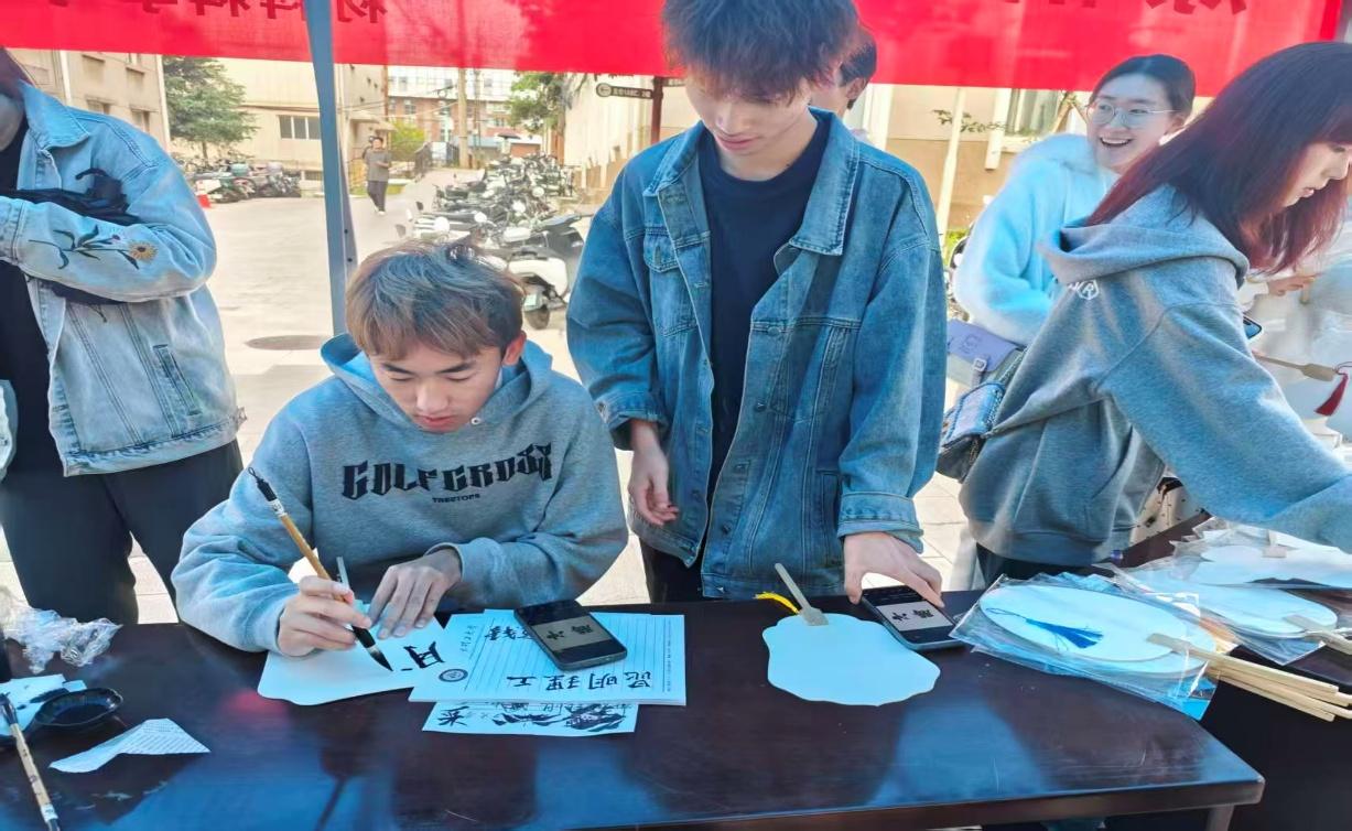 作为我国优秀传统文化的瑰宝,漆艺不仅承载着中华美学基因,其天然漆料的环保属性、创作过程的专注力培养,更与“沁人心康”的健康理念相契合。材料学院以分子材料、材料化学等专业特色,将漆艺材料研究、工艺创新与文化传播相结合。参与活动的同学们以漆艺手法,于扇面上挥毫泼墨,创作自己心中所想,绘制出一面面精美的扇面。