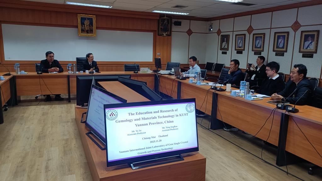 访问期间向泰方高校介绍了昆明理工大学宝石专业的专业特色和宝石单晶材料的研究进展,并与泰方相关专业的负责领导就双方合作内容进行深入交流,达成了以下成果:1、泰方一名教师到昆明理工大学材料学院攻读博士学位;2、共同发表相关研究领域的学术论文2-3篇/年;3、双方计划分别在2026年7月(中国)以及11月(泰国)共同举办宝石材料领域学术会议和专业技能比赛。