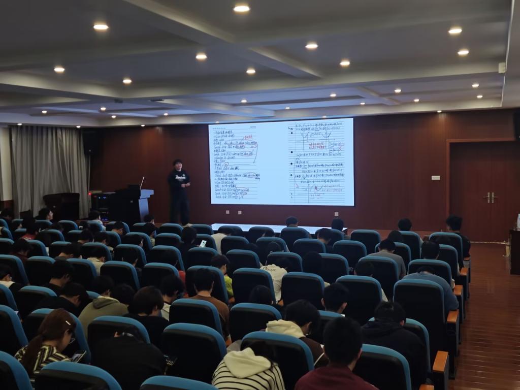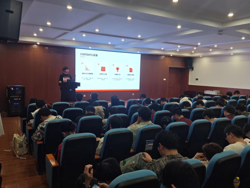 学院团委书记戴老师从学生工作与学风协同促进的角度进行了分享。她表示,学院团委始终将服务学生学业发展作为核心工作之一,鼓励同学们要明确学习目标,端正学习态度,不仅要掌握专业知识,更要注重培养自主学习、团队协作和解决复杂问题的能力。戴老师特别提到了学院“五老”精神、杰出校友事迹在激励学生方面的独特作用,倡导同学们从前辈的奋斗历程中汲取精神力量,将勤学善思内化为日常习惯,在比学赶超中共同进步,营造积极向上、互助互进的集体氛围。