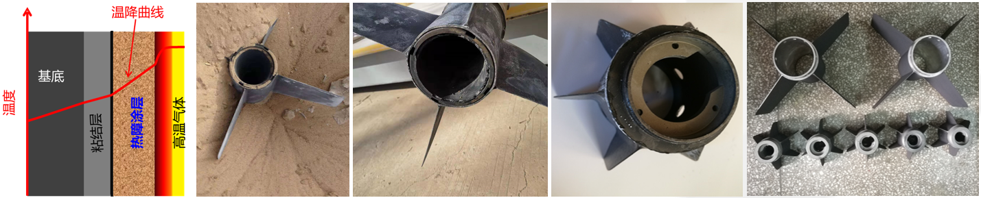 通过智能设计及成形技术,实现新型稀土钽/铌酸盐等系列超高温热防护涂层智能设计、成形及表面技术优化,实现在航空发动机、航天飞行器、运载火箭等大国重器热端部件的典型应用,为热端部件提供隔热降温、抗热冲击、抗热腐蚀等核心功能,助力大国重器的长期稳定服役