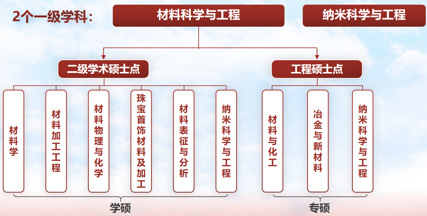 学术硕士点 材料学、材料加工工程、材料物理与化学、珠宝首饰材料与加工、材料表征与分析、纳米科学与工程