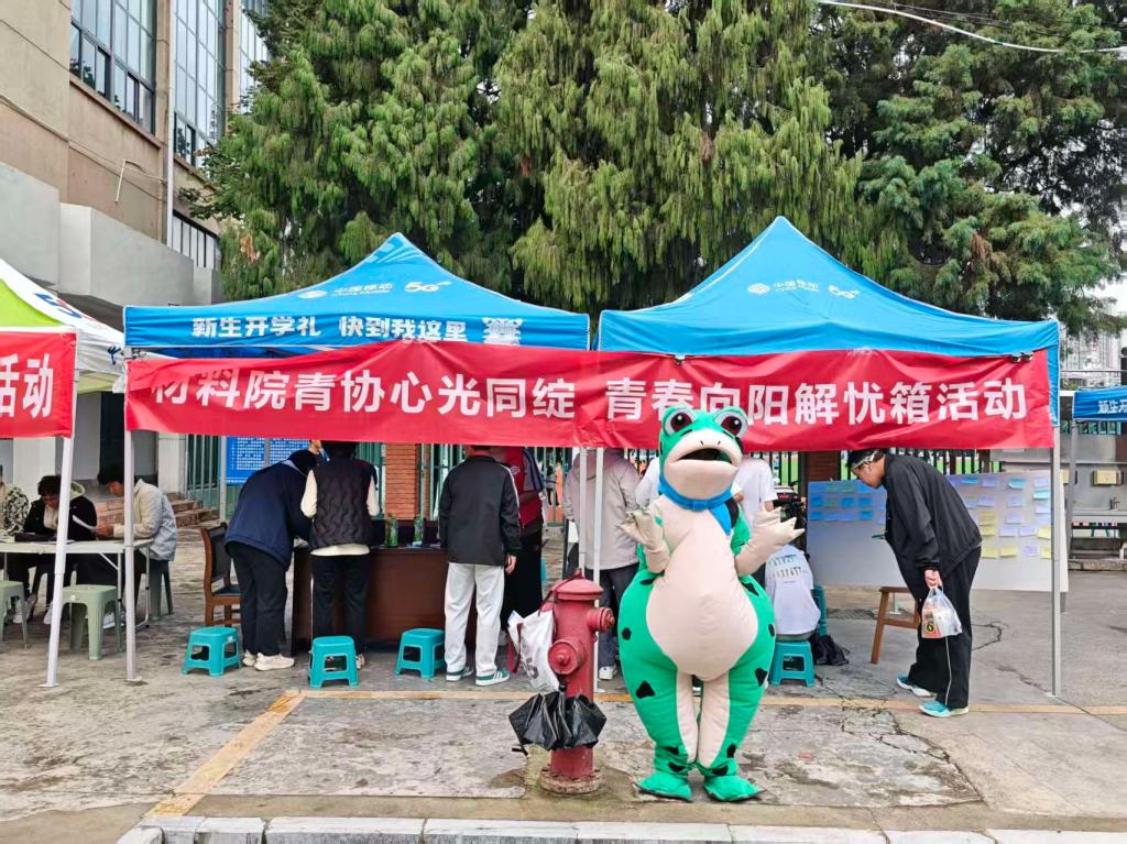 为了缓解大学生的心理压力和释放情绪,进一步持续开展“阳光心理进社区”活动,昆明理工大学材料科学与工程学院于2025年10月18日在羽毛球馆旁举办心光绽放,青春向阳——材料院青协“解忧箱”活动。